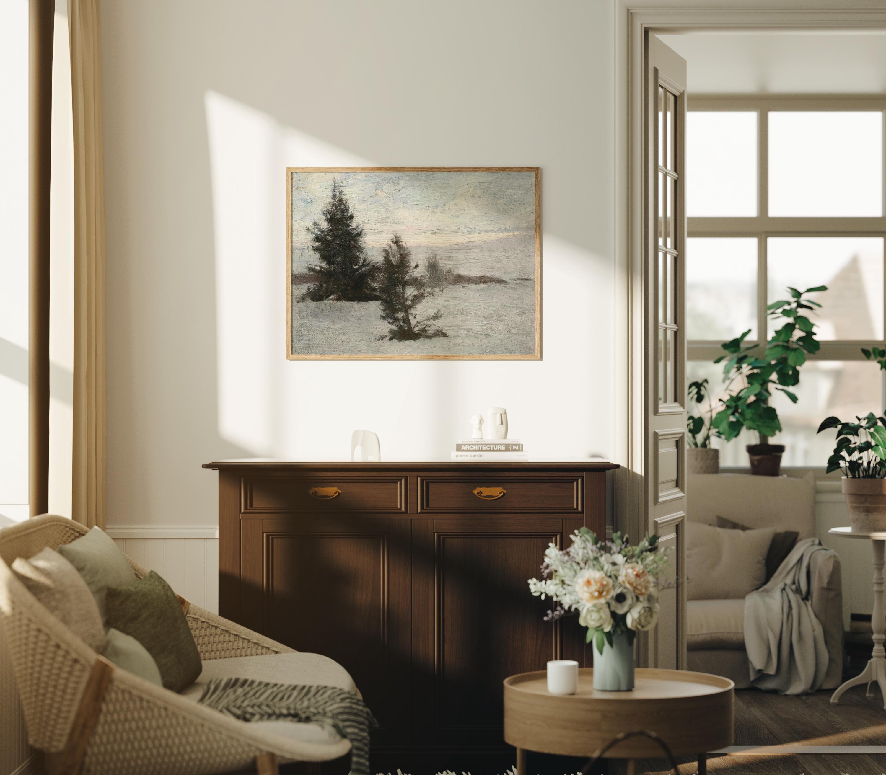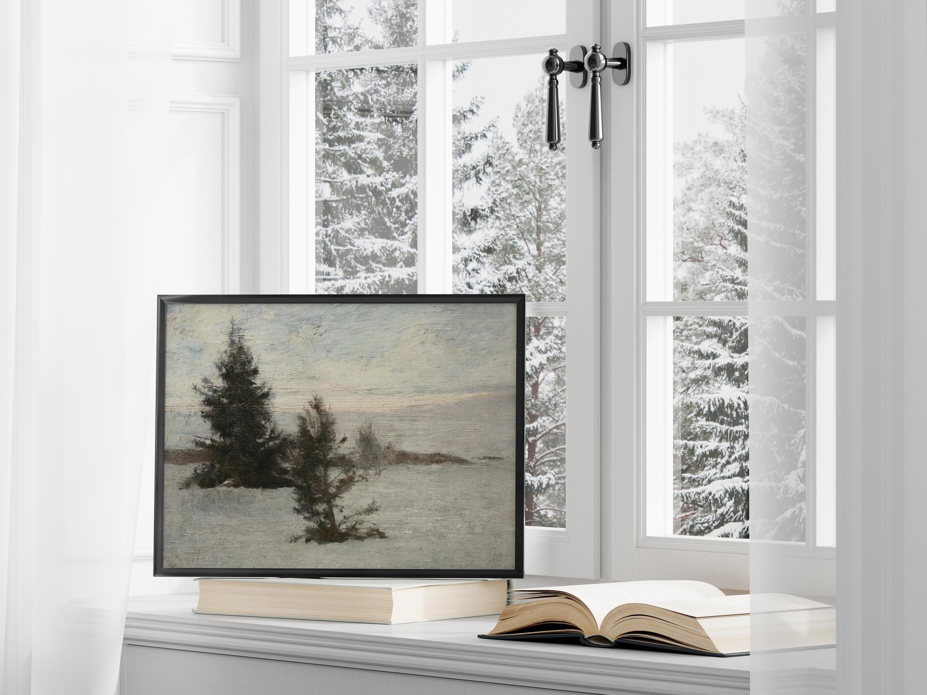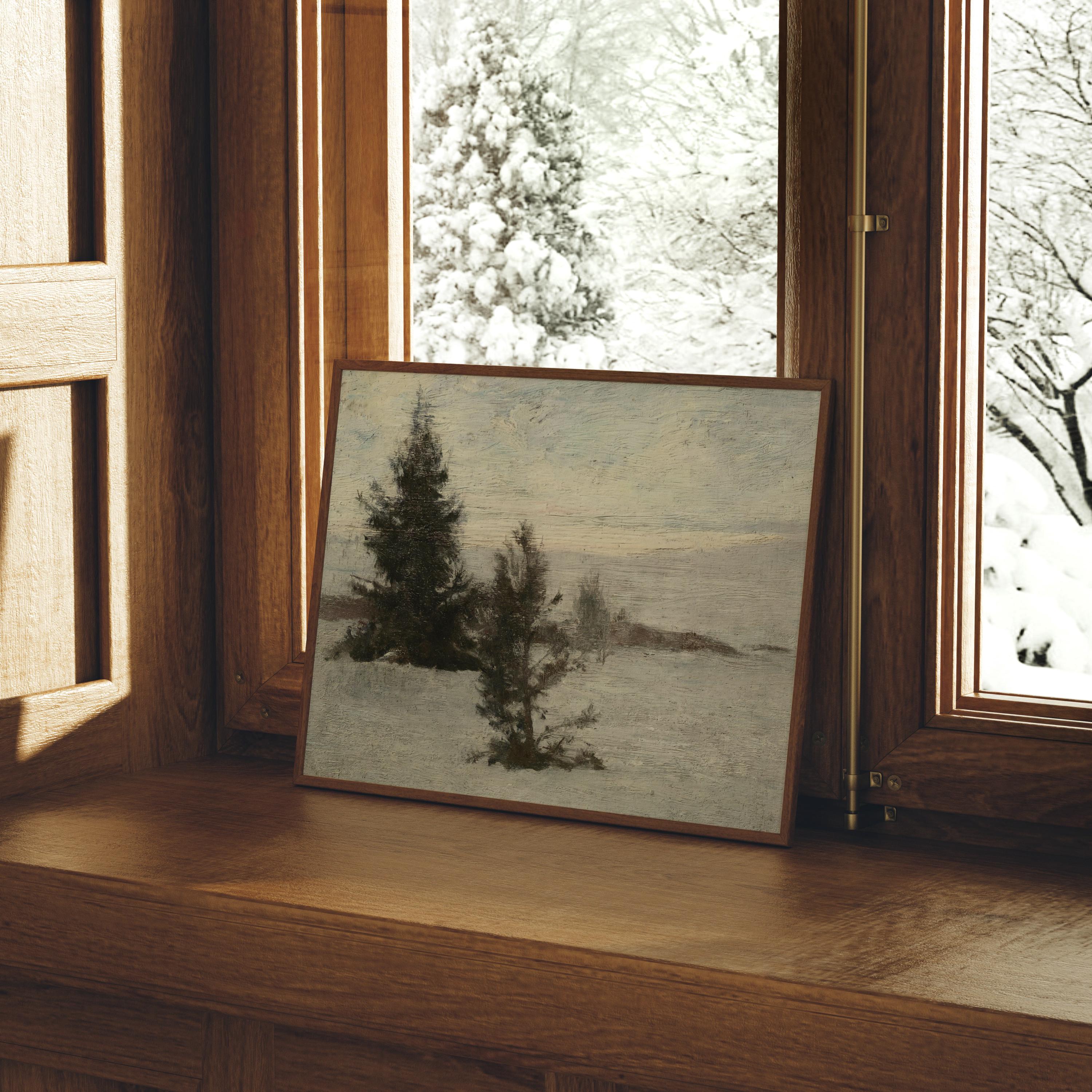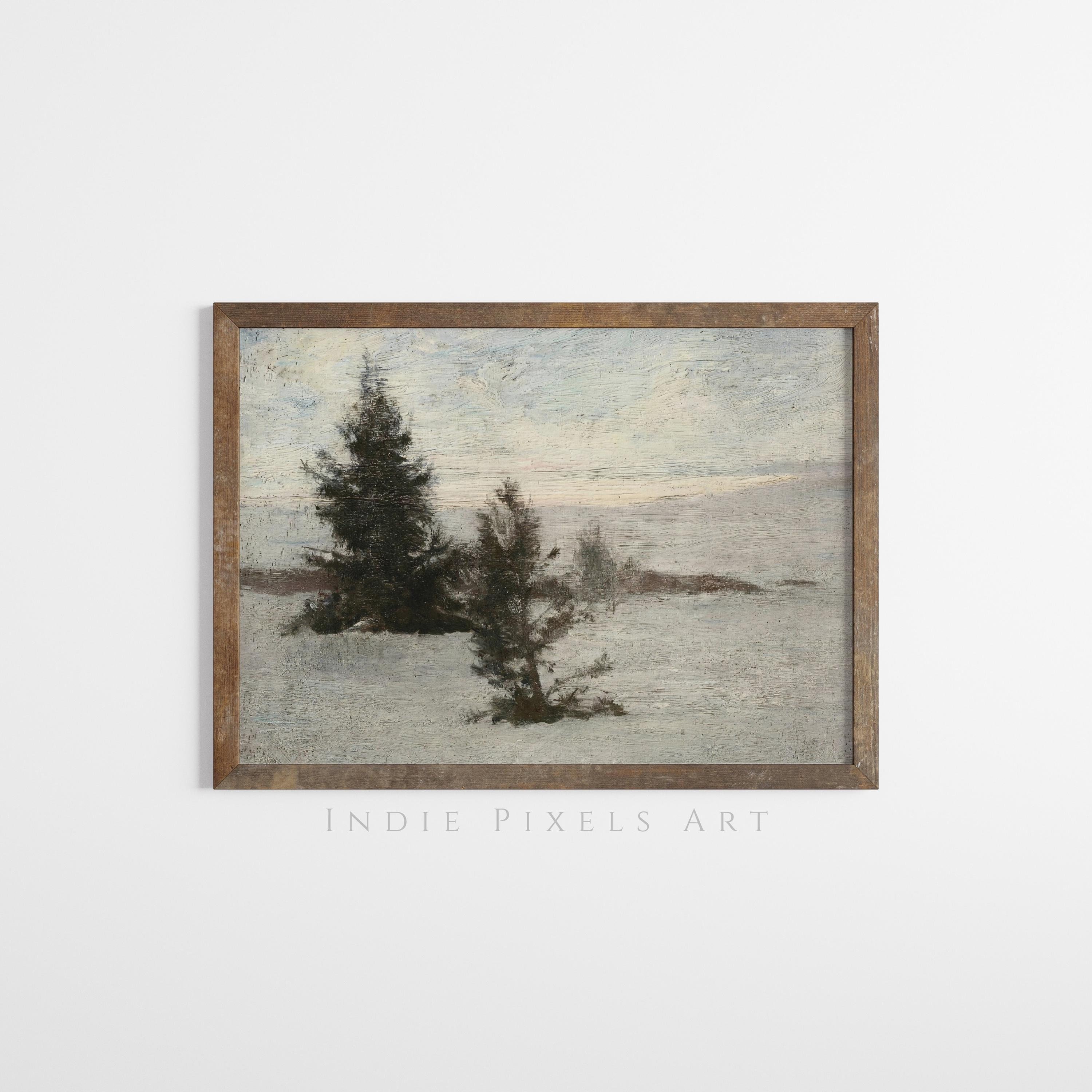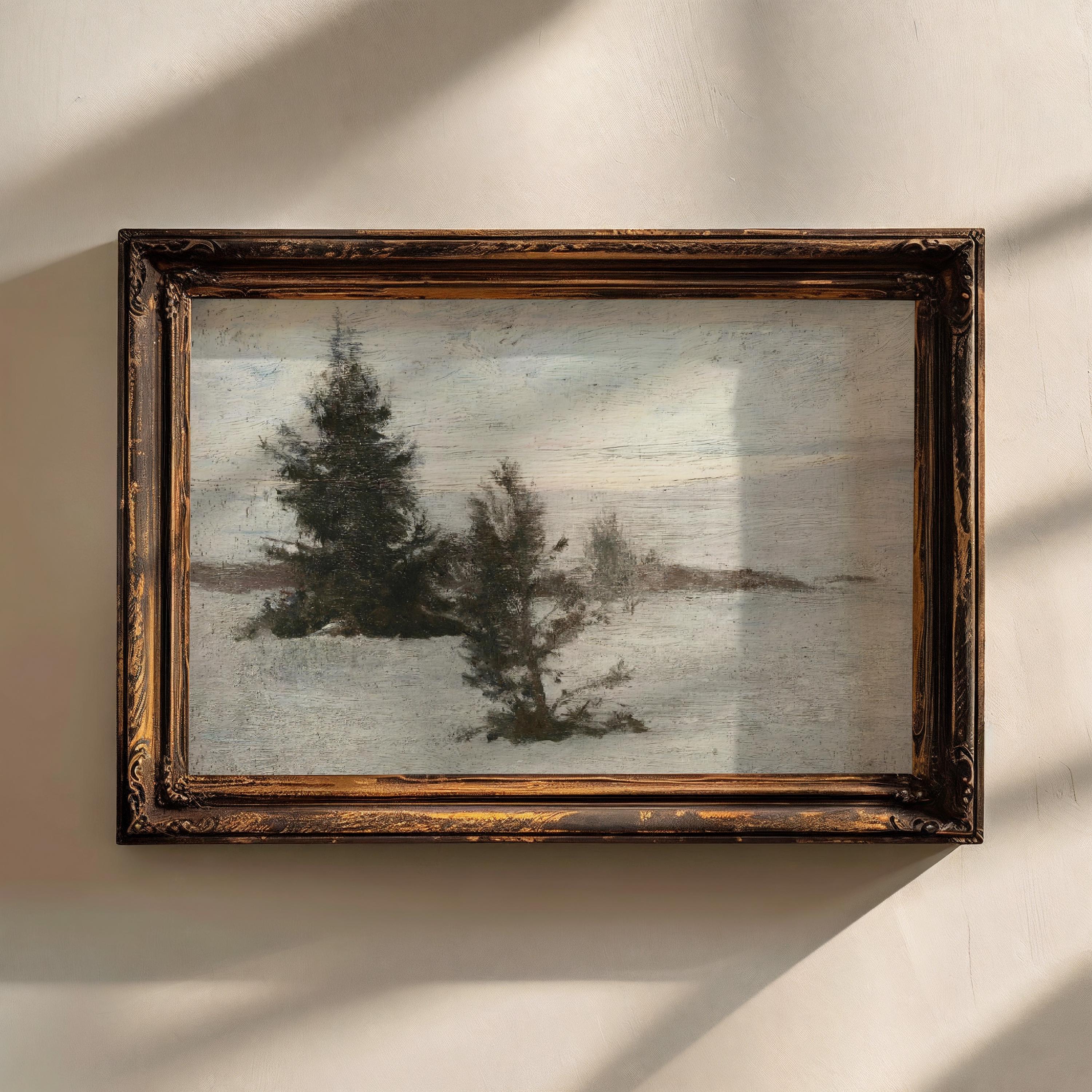 Vintage Winter Landscape Wall Art Print Moody Oil Painting from 1800s. Rustic Moody Winter decor. Instantly download, print and frame!