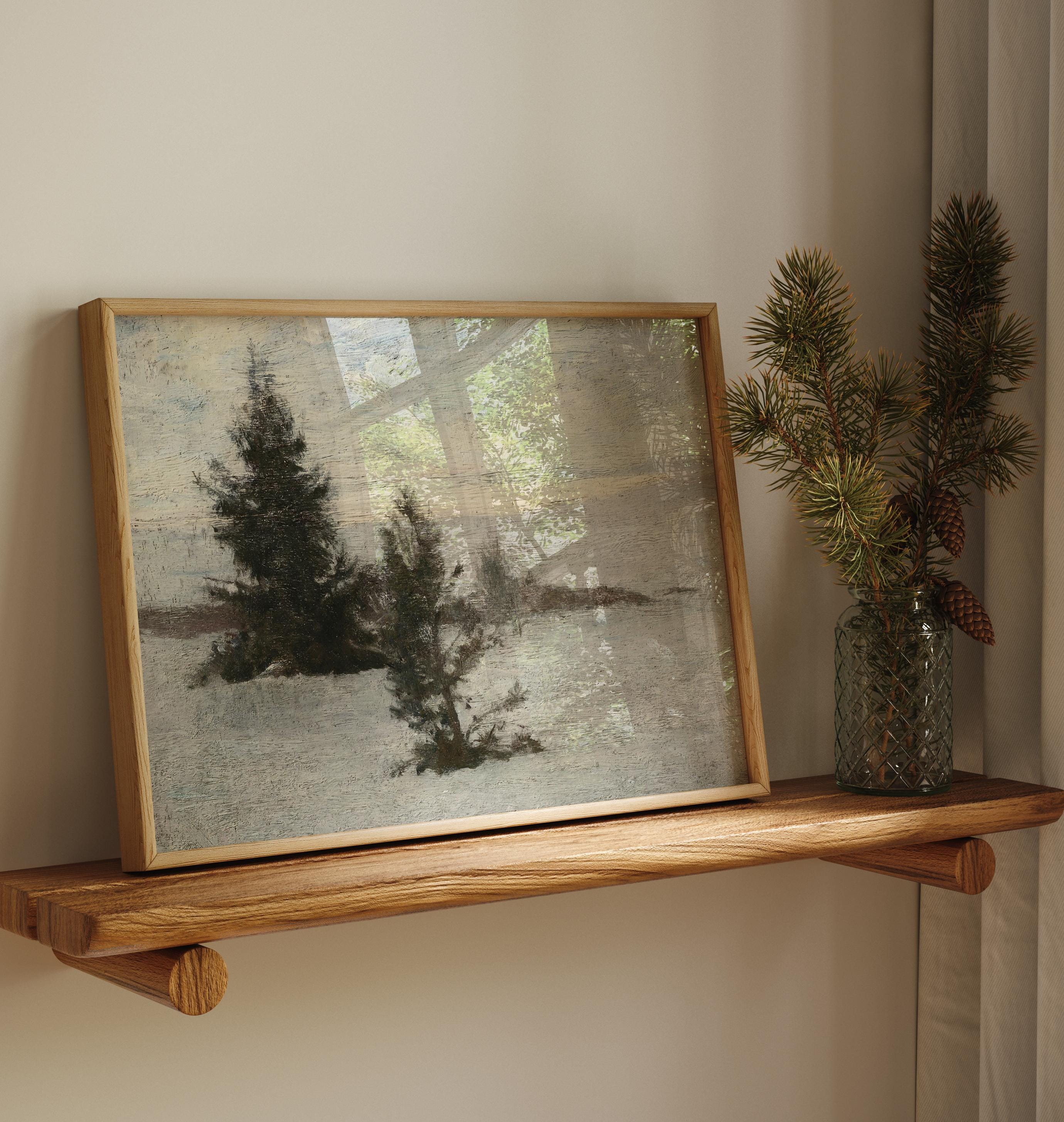 Winter Wall Art Vintage Winter Pine Forest Christmas Painting Digital Art | Rustic Winter Landscape Printable Digital Download