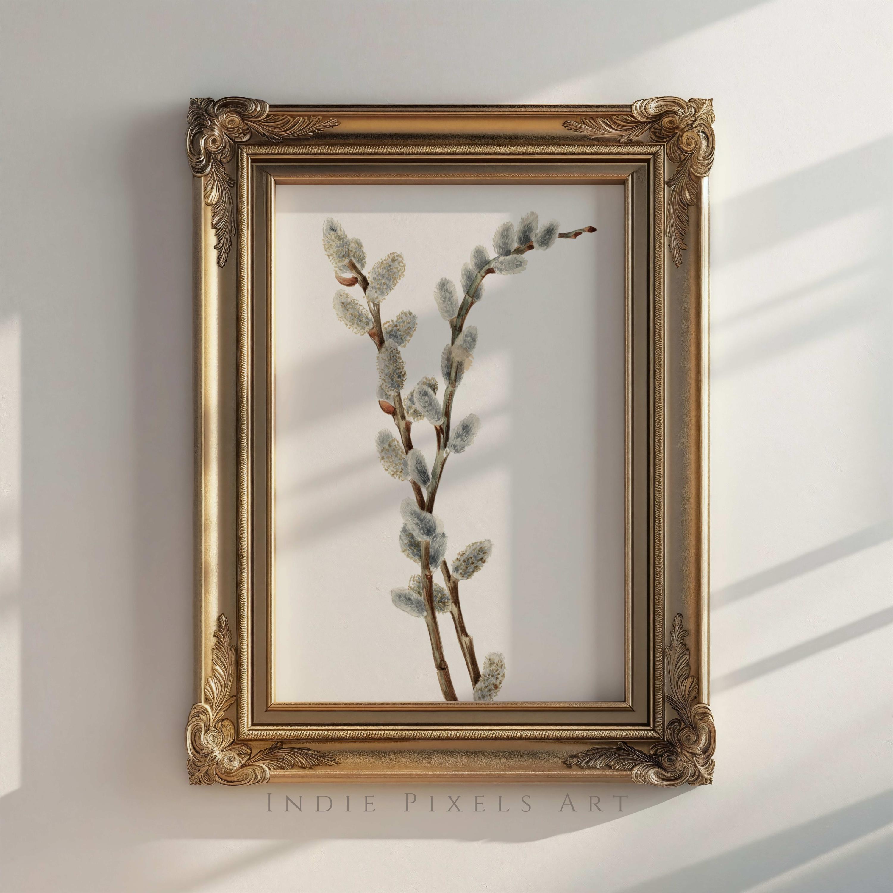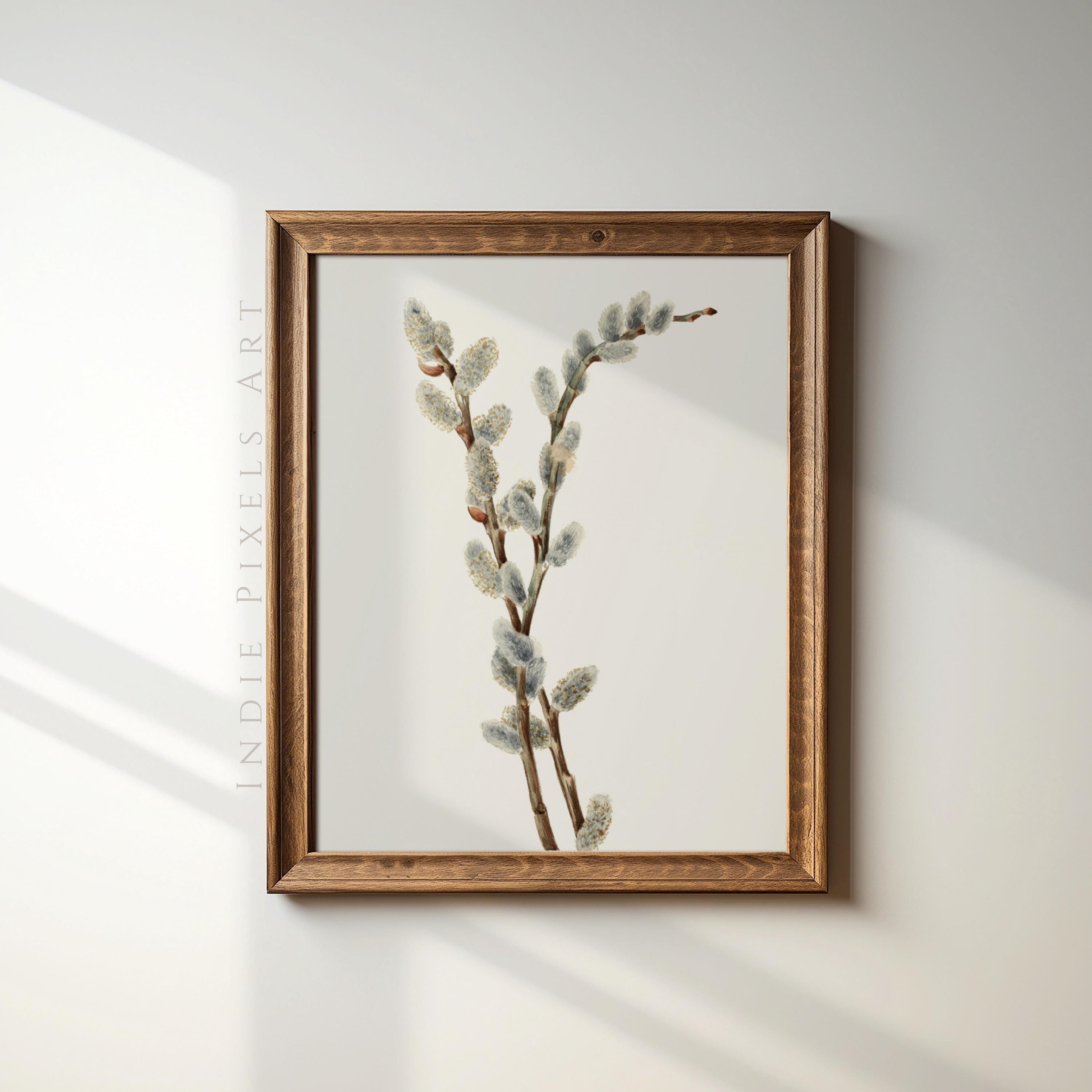 Vintage Willow Branch print from 1800s. Neutral Country Farmhouse and Cottage Winter Decor. Instantly download, print and frame!
