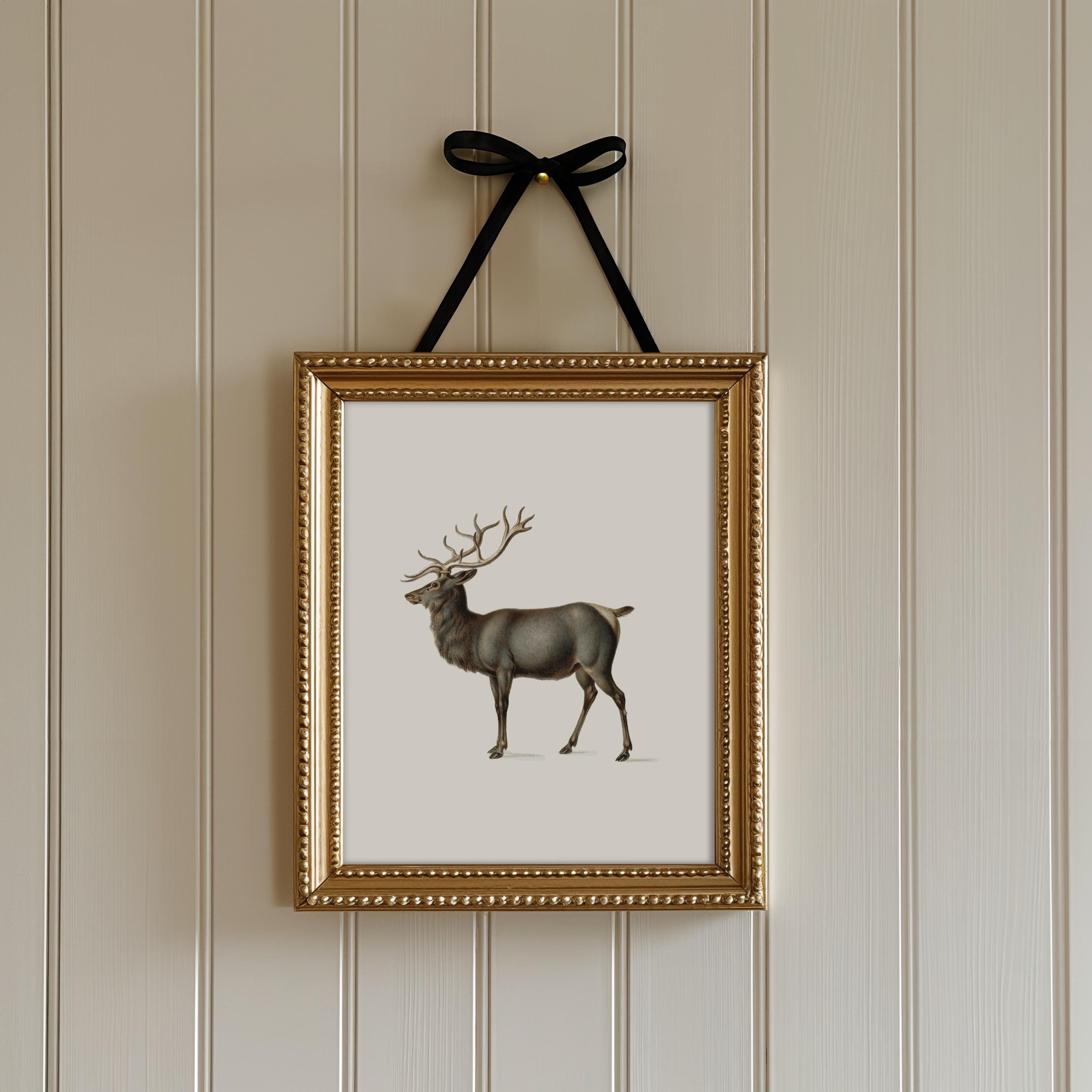 Vintage Reindeer/Elk Oil Painting from 1800s. Rustic Country Winter decor. Instantly download, print and frame!
