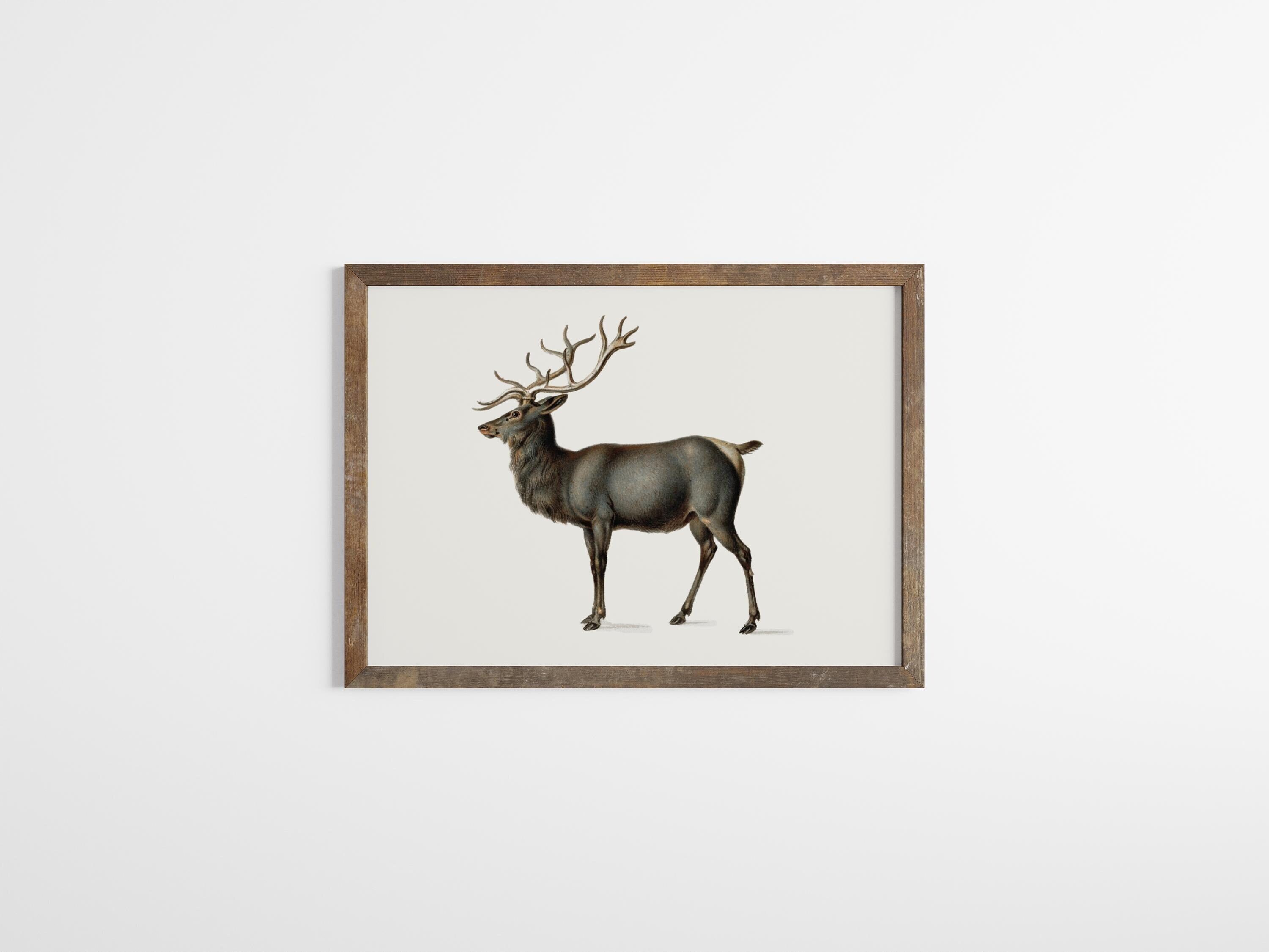 Vintage Reindeer/Elk Oil Painting from 1800s. Rustic Country Winter decor. Instantly download, print and frame!