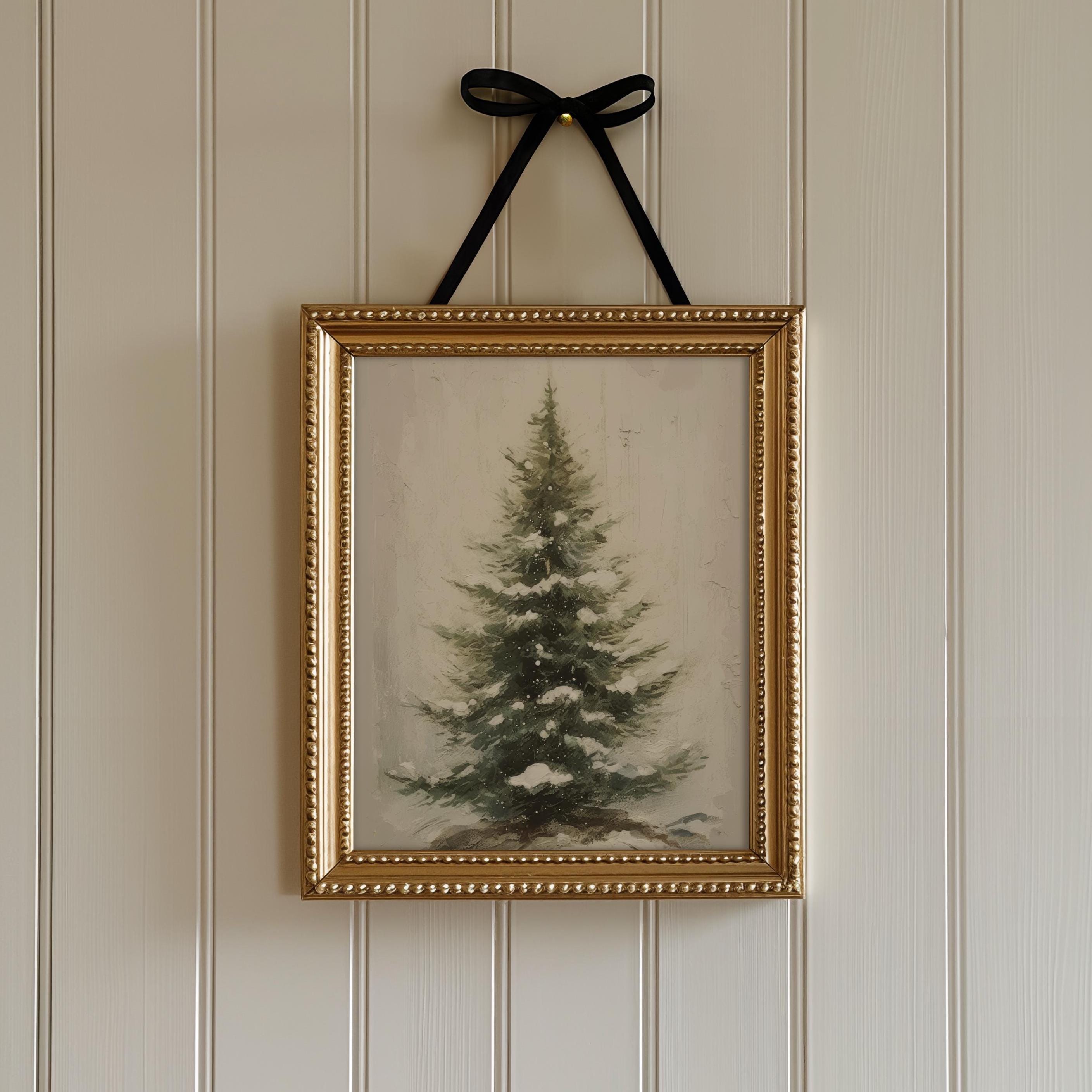 Vintage Christmas Tree Wall Art Print Moody Oil Painting. Rustic Moody Winter decor. Instantly download, print and frame!