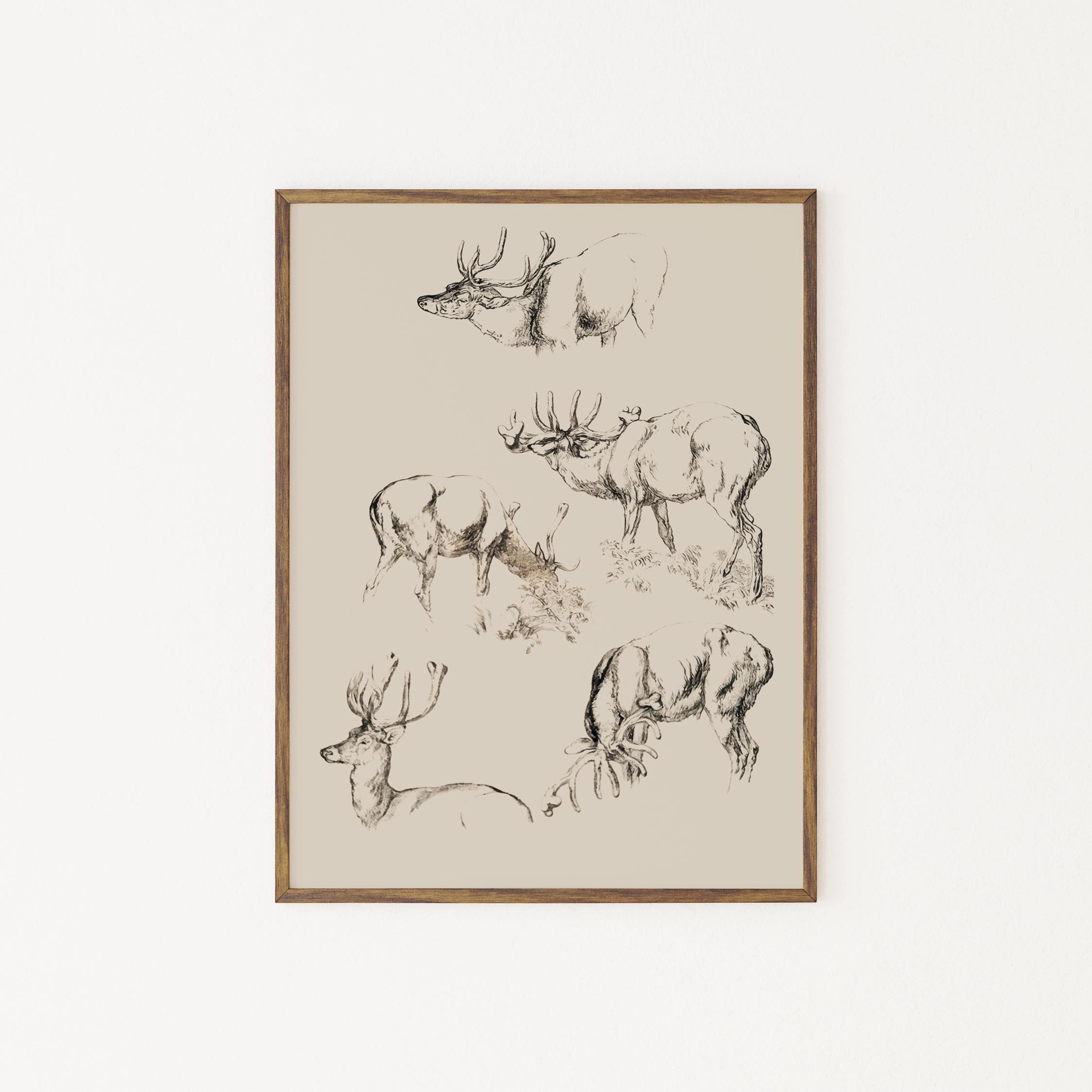 Vintage Christmas Wall Decor Reindeer from 1800s. Antique Holiday Cottage or Farmhouse decor. Instantly download, print and frame!